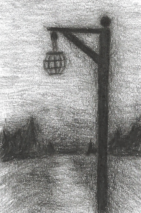 I had a dream last night that I was walking down a path like this one with an old friend... That I'd never met before. We were talking about somebody else, I can't remember who, then we got to this lamp post, he disappeared, and I woke up. *puts on spooky face* I believe it was a vision, because, after all, I am an artist... Perhaps this is a bad omen of something yet to come... *takes off spooky face* I used the same colored pencil to do the whole thing, and it's kinda' dull now, so I'll be off to sharpen it. It looks better in the flesh than it does in the scan, but alas, there is nothing I nor anyone can do.