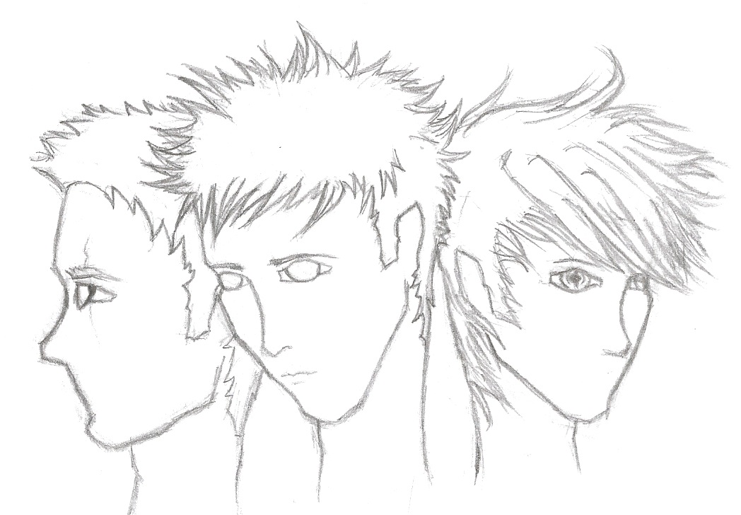 I'm not really sure who these guys are yet. The dude on the far left is going to have blonde hair and silver eyes, the dude in the middle will have black hair and black eyes with flecks of gold, and the dude on the far right is going to have auburn/red hair with CRAZY bright blue eyes.